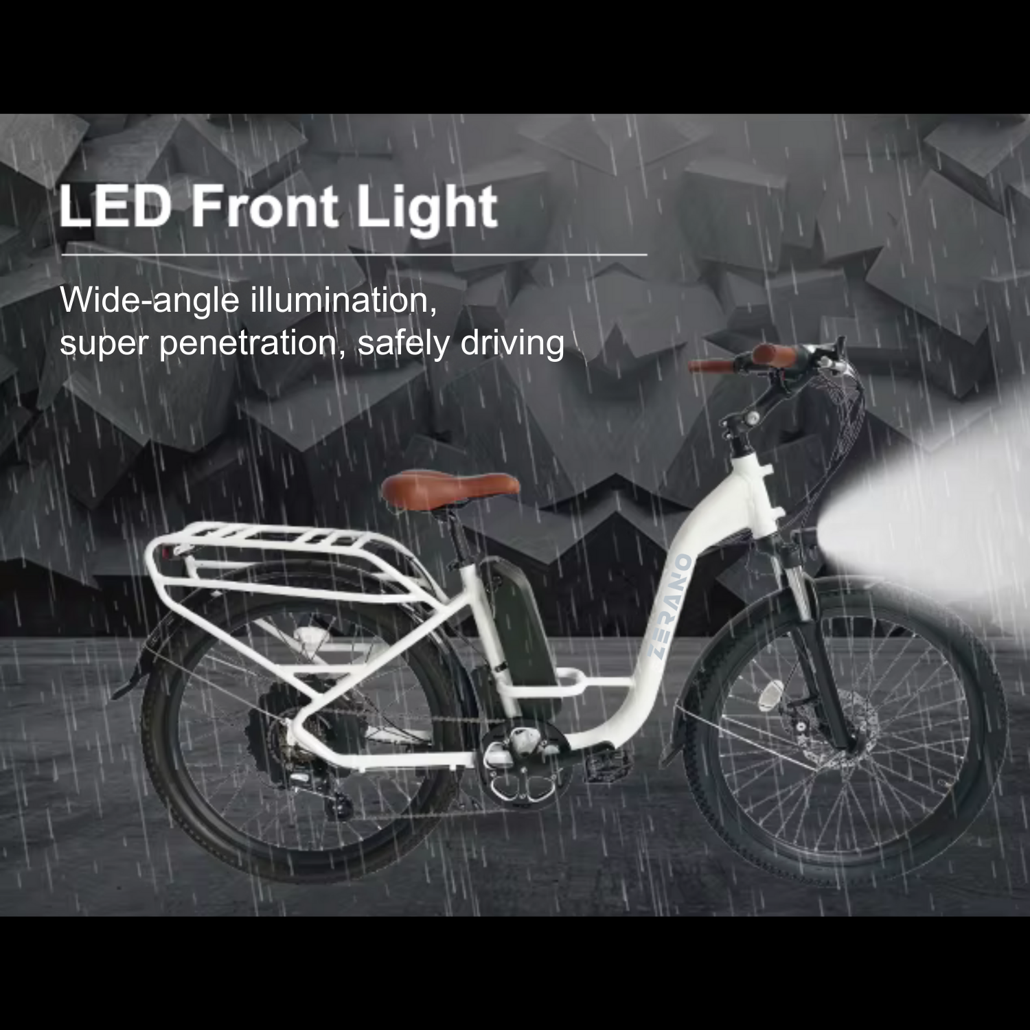 Ride at night safely with the bright front and rear LED lights. Brighten up the whole path or lighten up the street for cars.